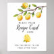 Rustikales Brautschild / Polterabend mit Aquarellbild von Zitronen, die an einem Baumzweig hängen. Im Text steht: "Platzieren Sie hier Ihre Rezeptkarte, damit die Braut Jahr für Jahr ihre Rezepte verwenden kann."