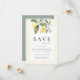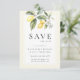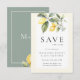 Diese hübsche, mediterran inspirierte Save the Date-Karte besticht durch Aquarellfarben-Zitronen mit eleganter Vegetation und zarter Jasmin-Blume. gerahmt in einem Buttergelb. Klassisches Salbei auf der Rückseite mit Ihren Initialen. Eine elegante Wahl für Frühling/Sommer, draußen, Natur oder Hochzeit in Urlaubsort.