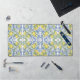 Brighten your workspace with this Mediterranean inspired lemon citrus design. Featuring intricate blue Italian majolica tile patterns and vibrant yellow lemons, this elegant desk mat is perfect for any home office. It adds a fresh, sophisticated touch while protecting your desk surface.