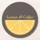 Ein brauner Untersetzer mit einer gelben Zitronenhalterung und anpassbarem Text. Es kann verwendet werden, wenn Sie Freunde oder Familienmitglieder auf Zuhause oder in einer Bar empfangen haben!