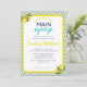 Feiern Sie eine zukünftige Braut, die ihren Hauptpresse mit einem Zitrone und mediterranem Brautparty gefunden hat! Dieses Design hat eine mediterrane Fliese auf der Vorderseite und hinten. An der gerahmten Vorderseite stehen Zitronen und Texte mit der Aufschrift "She Found your Main Squeeze".