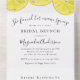 Diese Brautduscheinladung mit Zitrusfrüchten kann mit Einzelheiten der Veranstaltung personalisiert werden.