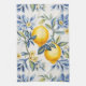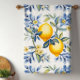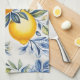 Die Küchenhandtücher sind blau-weiß und mediterran gefliest. Schöner gemalter Zitronenhintergrund. Sie können Text zu personalisieren hinzufügen.