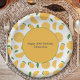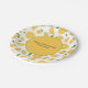 Teller mit einem Schnitt, halber und voller Zitronenmuster. Ein anpassbarer Text ist in der Mitte auf einem gelben Hintergrund verfügbar. Eine frische Dekoration für eine Geburtstagsfeier, eine Hochzeit, ein Party, eine Pension, einen Junggeselinnen-Abschied, etc.