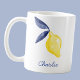 Hübsches Zitronendesign in gelb mit marineblauen Blätter für einen fruchtigen Sommer Schuss von visuellem Vitamin C. Originelle Kunst von Nic Squirrell. Ändern oder entfernen Sie den Namen zu personalisieren.