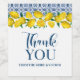 Eine hübsche Zitronenhochzeit danke Ihnen Label mit Zitronen und italienischen blauen Fliesen dekoriert. Ideal für die Etikettierung Weinflaschen für Ihre Hochzeit danke Geschenke. Entworfen für Sie von BlackBerry Boulevard.
