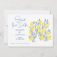 Mit unserer Lemon Vines Save the Date Card verkünden Sie Ihren besonderen Tag mit einem erfrischenden Ausbruch. Diese köstliche Karte bietet lebendige blaue und gelbe Zitronenweine, die Ihrer Hochzeit eine mediterran inspirierte Touch verleihen. Lass deinen Gästen auf helle und belebende Art und Weise von deiner bevorstehenden Feier Bescheid.