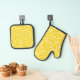 Dieser Topfhalter und das Ofen-Mitt-Set zeichnen sich durch ein überlappendes Zitronenmuster aus, das einen lustigen, zesty-Look ermöglicht.
