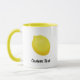 Eine ganze gelbe Zitrone. Benutzerdefinierte Hintergrundfarbe. Benutzerdefinierter Text auf beiden Seiten.