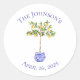 Ein runder Aufkleber mit Zitronentopf und blauer Schriftart zeichnet sich durch ein reizvolles, lebendiges Design aus, das elegant und frisch ist. Der Aufkleber zeigt ein wunderschön illustriertes Zitronenoberteil mit gelben Zitronen inmitten üppiger grüner Blätter, die in klassischer, symmetrischer Oberform angeordnet sind. Dies verleiht dem Design eine fröhliche, mediterran inspirierte Touch. Der Text, z. B. Name, Datum oder kurze Phrase, ist elegant in einem blauen Schriftart gedruckt, der sich wunderbar mit den hellen Zitronen und grünen Blätter kontrastiert. Die runde Form des Aufklebers ergänzt das Design und eignet sich ideal zum Abdichten von Umschlägen, Dekorieren von Gastgeschenken oder Hinzufügen einer persönlichen Touch zum Dekor. Die Kombination aus naturbelassenem Zitrusmotiv und raffinierter blauer Schrift macht den Aufkleber zu einem idealen Ort für Hochzeiten, Duschen oder andere Veranstaltungen, die mit einer spielerischen Drehung eine frischen Eleganz feiern.