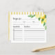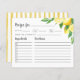 Die Lemon Tree Brautparty Recipe Card zeichnet sich durch ein reizvolles und rustikales Design aus und zeigt eine Aquarelldarstellung eines Zitronenbaumzweiges, der mit üppigen Zitrusfrüchten geschmückt ist. Ermuntern Sie Ihre Teilnehmer, diese skurrile Karte mit ihren Lieblingsrezepten zu vervollständigen und sie zu bitten, sie zur Braut oder zum Polterabend mitzunehmen. Erleben Sie das Wesen Ihrer Zitronenfeier mit diesem charmanten und praktischen Pfand und sorgen Sie für ein unvergessliches und geschmackvolles Ereignis, das Sie mit Ihrer Familie und Ihren Freunden teilen.