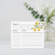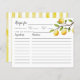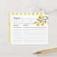 Whimsikale rustikale Rezept-Karte für Ihr Zitronenthema Brautparty mit Aquarellbild eines Zitronenbaumzweigs mit den Zitrusfrüchten. Frag deinen Gästen, diese Rezeptionskarte auszufüllen und sie in die Braut oder den Polterabend zu bringen.