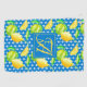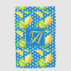 Fügen Sie die Initialen der Braut und der Bräuche (kleine Buchstaben) und ihren gemeinsamen verheirateten Vornamen (großer Buchstabe) hinzu, um ein stilvolles Monogramm-Geschenk für das frisch verheiratete Paar zu erstellen. Die atemberaubende gelbe und grüne Zitronenbaumstruktur vor einem wunderschönen gemusterten Hintergrund in Ozeanblau und Weiß.
