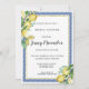 Erfrischende und coole Zitrusfrüchte schaffen immer schöne Ausstellungen und Erfrischungen. Die Jenny's Lemons Collection nimmt schicke Aquarelllemonen und verbindet sie mit mediterran blauen Fliesen. In diesem Design schaffen die Fliesen einen blauen Rahmen. Ein dünner goldener Rahmen erhöht ihn. Zwei Zitronenbouquets fügen eine blumengeschmückte Touch hinzu. Sie fand, dass ihr Hauptpresse oben geschrieben ist. Die übrigen Einzelheiten des Brautparty folgen.