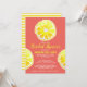 Die Einladung zur Bridal Dusche beinhaltet halbfarbene Aquarellfarben, gemalte Zitronen und einen orangefarbenen Hintergrund. Die Rückseite der Karte weist weiße und gelbe Streifen auf.