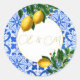 Lemon Wedding Blue Tile Monogram Summer Runder Aufkleber