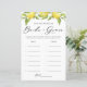Wie alt waren Braut und Bräutigam? Fügen Sie diese lustige und spielerische botanische Fotodusche-Spielkarte zu Ihrer Veranstaltung hinzu. Es zeigt Aquarellbilder von Zitronen und Grünpflanzen. Sie können die Karte personalisieren, indem Sie zurückliegende Texte hinzufügen. Dieses Zitronenspiel Foto mit Spielkarte eignet sich ideal für Hochzeiten und Brautparty im Sommer.