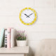 Lemon Yellow Quatrefoil Pattern Große Wanduhr