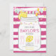Diese bezaubernde Limonade-Geburtstagseinladung beinhaltet einen Maurerkrug mit Stroh und Zitronen, einen warmen rosa gestreiften Hintergrund und ein zauberhaftes Zitronenmuster auf der Rückseite. Es ist die perfekte Einladung für einen Frühling- oder Sommergeburtstag mit süßer Limonade und Pinwheel Spaß!