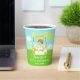 Dieser niedliche und skurrile Papierbecher ist mit einem roten Haarjungen mit heller Haut auf einem gelben Limonadenständer ausgestattet, der mit Blume und Bundings geschmückt ist. Im Hintergrund ist ein blauer Himmel, Sonne und Schmetterlinge. Der Text verbindet dekorative und serifenlose Schriftart für einen stilvollen und modernen Look. Das ist perfekt für eine Sommergeburtstagsfeier. Grafik von MUJKA