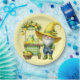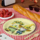 A Cute Yellow Lemonade Stand With Gnome Paper Plate For BBQ's Or Any Type Of Luncheon