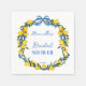 Zitronen blaue Bugband Coquette Brautparty personalisierte Servietten Vorlage, Zitrusfrüchte Zitronen blau und gelb Brautparty mit Monogramm Servietten Vorlage; Sommerservietten Brautparty, personalisierte italienische Zitronen personalisierte Tischdekoration