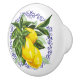 Ein zauberhafter Knöpfe für die Keramik mit einem süßen Krug, der mit hellgelben Zitronen und üppigen grünen Blätter gefüllt ist und von eleganten, blauen Filigranfarben umgeben ist. Dieses Design fügt eine Touch von Country-Französisch und europäischen Flair zu Küchenschränken oder Möbeln. Ein wunderschönes Akzent und ein nachdenkliches Geschenk für Brautpartys, Muttertag oder jeden lemonenliebenden Zuhause-Dekorator.