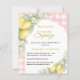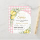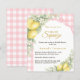 Celebrate your upcoming bundle of joy with this elegant lemon-themed bridal shower invitation. Featuring a blush pink and white gingham background, delicate watercolor lemons, fresh greenery and a pink bow, this design creates a warm and inviting atmosphere perfect for a summer or citrus-inspired bridal shower.