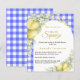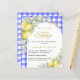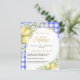 Celebrate your upcoming bundle of joy with this elegant lemon-themed bridal shower invitation. Featuring a blue italian, Amalfi style and white gingham background, delicate watercolor lemons, fresh greenery and a pink bow, this design creates a warm and inviting atmosphere perfect for a summer or citrus-inspired bridal shower.