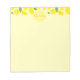 Ein gelbes Notizblock mit einem oberen Rand von lächelnden Zitronen und grünen Blätter. Oben steht eine Name- und Monogramm-Kombination, die individuell angepasst werden kann. Das Pad ist größtenteils leer und hat viel Platz zum Schreiben.