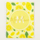 Ein Planer mit einem Muster lächelnder Zitronen und grüne Blätter. Zusätzlich zum Fruchtmuster ist eine Name- und Monogramm-Kombination, die individuell angepasst werden kann.