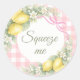 Lemons pink gingham squeeze me party favor runder aufkleber
