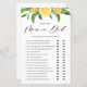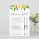 Rate mal, wer es gesagt hat! War es die Mutter oder der Vater? | Fügen Sie diese lustige und spielerische Baby-Dusche sagte "He Said She" Spielkarte zu Ihrer Veranstaltung hinzu. Diese anpassbare Spielkarte für Mama oder Papa zeigt Aquarellbilder von Zitrone und Orangen mit Akzenten im Grünen. Personalisieren Sie diese, indem Sie Ihre Fragen hinzufügen. Diese Babydusche aus Zitrusfrüchten ist ideal für Frühjahr- und Sommerduschen.