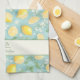 Zitronenhandtuch, Zitronenmuster, botanisch-gelbe Mittelmeerobst, Gliedbaumblüten, weiße Blume auf Minzblau, hellpastellfarbene türkisfarbene Blume, künstlerisch gestrichene Aquarellmalerei, "floraler persönlicher Familienname", frisch-Zitrusgrün-Blätter, "kundenspezifische personalisierte Monographie"