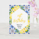 This beautiful and elegant birthday card features watercolor citrus lemons and foliage on a Mediterranean tile background. The text combines handwritten script and serif fonts for a stylish and modern look. This is perfect for a summer rustic birthday.