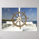 Das Lenkrad des Schiffes wurde gegen den blauen Himmel geschossen
