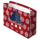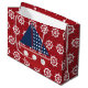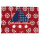 Ein rotes und weißes Ruderrad mit einem großen Geschenkbeutel mit einem Wasserschiff für jede Art von Anlass wie Geburtstag oder Kinderdusche