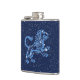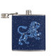 Flasche im Zodiaksymbol für Leo in weichem silberblauem Blau, überlagert mit den Sternen des Sternbildes, vor einem Sternenhimmel tiefer Mitternachtsblau
