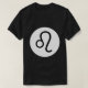 Leo-Symbol in schwarz. NB Dieses Design kann angepasst werden, das Motiv erscheint als einfaches schwarzes Symbol auf hellen Shirts, oder als schwarzes Symbol in einem weißen Kreis auf dunklen Shirts.