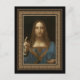 Leonardo da Vinci 1500 Salvator Mundi Postcard. Leonardo da Vinci malte Salvator Mundi um 1500, als ihm seine Vision von Christus dem Erlöser aus der Finsternis erscheint, mit der Kristallkugel in Christi links Hand, die die WELT repräsentiert, und mit Christi rechter Hand, die in DER BLESSING ... Der Christ, der ein wunderschönes Gewand von Lapis Lazuli blau trug ... das wertvoller war als reines Gold und oft Spuren von reinem Gold enthielt.