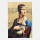 Eine atemberaubend schöne Frau, die ein Haustier in der Hand hält - ein Verweis auf die Sforza-Familie, deren Mitglied die Dame die Herrin war. Vor dem Hintergrund von Leonardos unverwechselbarem Rückwärtsschreiben.