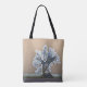 Ein Kunstdesign eines einsamen Baumes, das dem Design ein frostiges Wintergefühl verleiht.