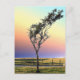 Ein Kunstdesign eines einsamen Baumes mit einem dramatischen Himmel und Feldern in der Ferne.