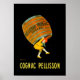 Art Deco entstand aus der Zwischenkriegszeit, als die rapide Industrialisierung die Kultur veränderte. Eines ihrer wichtigsten Attribute ist die Umarmung der Technologie. Der Stil zeichnet sich oft durch reiche Farben, gewagte geometrische Formen und aufwändige Verzierungen aus. Leonetto Cappiello ( April 1875 in Livorno, Italien - Februar 1942 in Cannes, Frankreich) war ein italienischer und französischer Plakatkünstler, der in Paris lebte. Er wird heute wegen seiner Innovation im Plakatdesign oft als "Vater der modernen Werbung" bezeichnet. Er war der erste Plakatkünstler, der kühne Figuren verwendet hat, die aus schwarzem Hintergrund herausstürzen, ein verblüffender Kontrast zu den frühen Postern. Dieses Plakat zeigt einen roten, haarigen Kirschen, der einen riesigen Holzkrug mit Cognac auf seinem Rücken ausbalanciert. Die Schrift auf den Staaten "Pellisson Pere et Co."