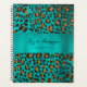 Elegantes und elegantes Leopardenmuster mit aquamarin türkisfarbenen Akzenten aus Metall. Idealer Zuhause-, Familien-, Schule- oder Bürobuchplaner.