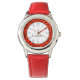 Kinderuhr aus Edelstahl mit rotem Lederarmband