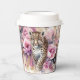 Das Bild zeigt eine wunderschön detaillierte Abbildung eines jungen Leoparden, umgeben von einer Vielzahl von dynamischen, blühenden Blume. Der Leopard mit seinem gepunkteten Fell und den ausdrucksvollen Augen ist in der Mitte sichtbar und bildet einen auffallenden Brennpunkt. Die umliegenden Blume, vorwiegend in Rosa und lila, fügen der Komposition eine weiche, skurrile Touch hinzu. Der Hintergrund ist in Gold- und Pastellfarben gehalten, was das Gesamtbild des Bildes in Traum und Kunst verstärkt. Diese faszinierende Mischung aus Wildnis und Blumenelementen macht das Bild optisch ansprechend und einzigartig, perfekt für Produkte, die ein Gefühl von Eleganz und natürlicher Schönheit hervorrufen.