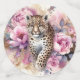 Das Bild zeigt eine wunderschön detaillierte Abbildung eines jungen Leoparden, umgeben von einer Vielzahl von dynamischen, blühenden Blume. Der Leopard mit seinem gepunkteten Fell und den ausdrucksvollen Augen ist in der Mitte sichtbar und bildet einen auffallenden Brennpunkt. Die umliegenden Blume, vorwiegend in Rosa und lila, fügen der Komposition eine weiche, skurrile Touch hinzu. Der Hintergrund ist in Gold- und Pastellfarben gehalten, was das Gesamtbild des Bildes in Traum und Kunst verstärkt. Diese faszinierende Mischung aus Wildnis und Blumenelementen macht das Bild optisch ansprechend und einzigartig, perfekt für Produkte, die ein Gefühl von Eleganz und natürlicher Schönheit hervorrufen.