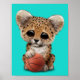 Dieses hübsche Design besticht durch einen kleinen Leopardenbecher mit einer Pfote auf einem Basketball. Die Katze freut sich mit einem leicht geneigten Kopf, der ihr einen niedlichen und merkwürdigen Look verleiht. Dieses sportliche Leopardendesign ist perfekt für alle Basketballfans geeignet.