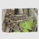 Eine Fotografie eines Leopardfrosches, der auf einem Stapel der Stöcke sitzt.